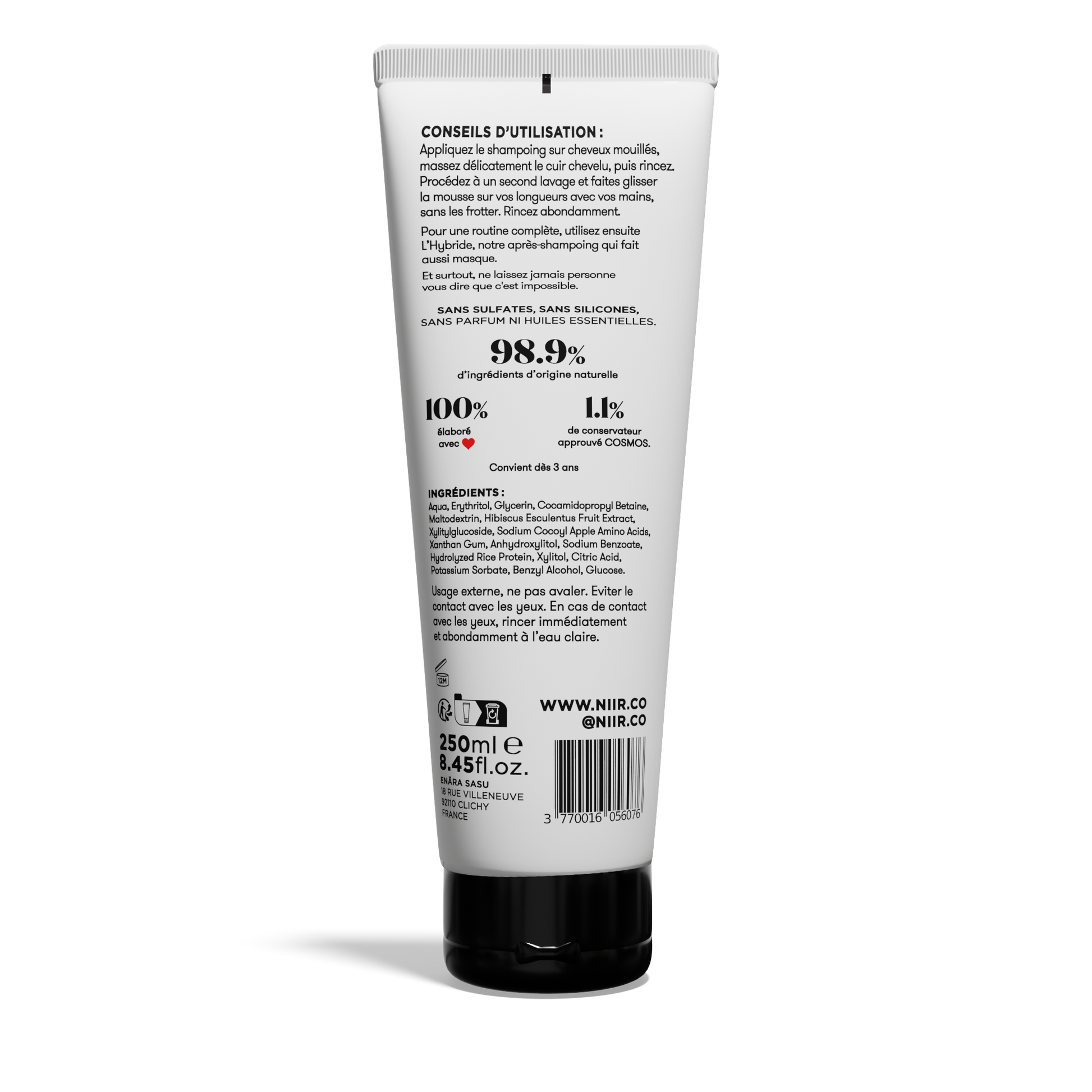 Vegan. Sans sulfates. Sans silicones.